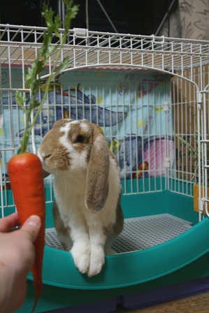 ハルは人参をもらえると思って、前足揃えてオネダリ中です。