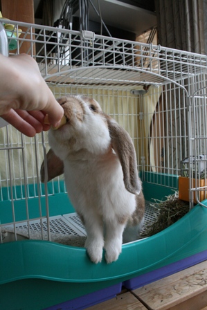 大好きな物を食べると人間もうさぎもいい顔しますよね~