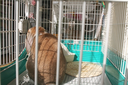 そんな垂れちゃん&タレちゃんのケージを丸洗いした日、ケージ越しのご対面をしました。