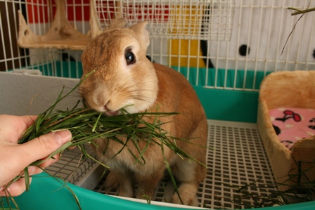 ハルが大人しくしている間、牧草を食べたり、ペレット食べたり、生野菜を食べたりと始終モグモグしてて、ハルよりも先に完食していました。←これは珍しいことなのです