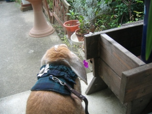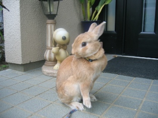 まだまだ遠出のうさんぽは苦手なハルとフユですが、玄関の前でプチにわんぽをしました。