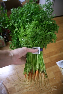 山形に行く用事があり、スーパーに寄ったら葉付き人参発見!!
