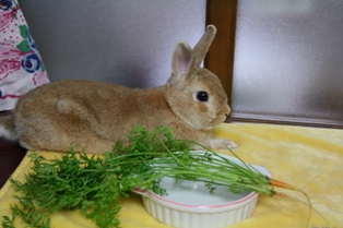 写真がどれもブレてしまうくらい、もの凄いスピードで葉付き人参を食べるフユ。