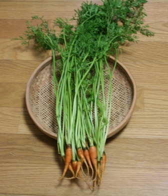 自家製のにんじんとは違い、葉っぱがたくさん付いていてとっても美味しそうです。